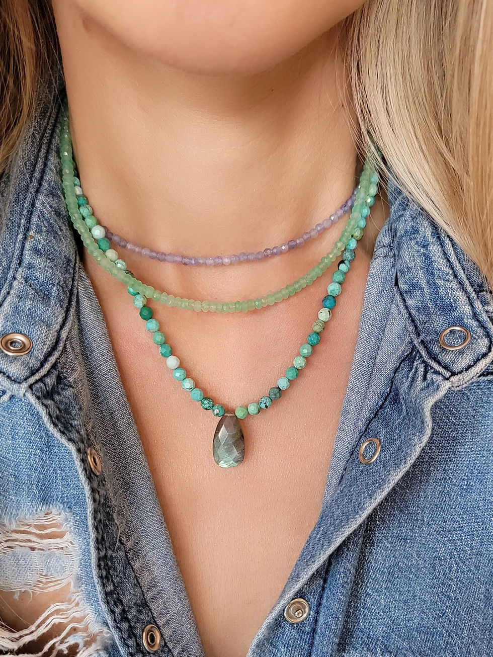 Here you will discover the entire Collection, featuring solid gold pendants and charms, as well as beaded gemstone pieces. Each item is designed to complement the others, allowing you to create fun layering stacks or to choose a foundational jewelry piece that pairs well with everything.